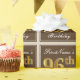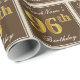 This simple and elegant wrapping paper design features a personalised message like "FirstName’s 96th Birthday" (with the "96th" having a faux/imitation gold-like colouring look) within a brown-coloured square area featuring a simple border outline. The name is in an elegant white-coloured script-like text, and can be personalised. Wrapping paper like this could perhaps be used when wrapping birthday gifts for somebody who is celebrating their ninety sixth birthday. [~Z0000223]