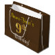 Elegant, Brown, Faux Gold 9th Birthday + Name Large Gift Bag