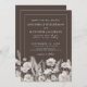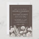 Along the bottom, a delicate floral border showcases pampas grass and soft blooms in shades of white, cream, taupe, and gray, accented with muted greenery for a rich, elegant contrast against the dark chocolate backdrop. The deeper tones add warmth and drama while keeping the overall look polished and refined.