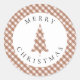 Elegant Brown Gingham Plaid Pine Tree Merry Christmas Classic Round Sticker - Add a touch of cosy and warmth to your Christmas mail or gift wrapping with this elegant and modern cottagecore vibes Christmas pine gingham stickers. With brown chocolate mocha plaid and elegant serif font. All text is editable.