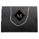 Make a statement with this elegant and stylish black and gold monogram large size gift bag. This simple and sophisticated brushed gradient design with a modern diamond shaped frame can be personalised by adding the monogrammed initial of the guest of honour. Flat printed image, NOT metallic.