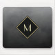 Elegant Brushed Black With Simple Gold Monogram Mouse Mat
