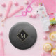 Elegant Brushed Black With Simple Gold Monogram Paper Plate