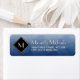 Capture attention with these elegant and stylish blue and black monogram return address labels. This simple and sophisticated brushed gradient design with a modern diamond shaped frame with a gold border can be personalised by adding your monogrammed initial. Flat printed image, NOT metallic.