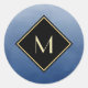 Elegant Brushed Blue With Simple Gold Monogram Classic Round Sticker