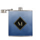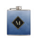 Capture attention with this elegant and stylish blue and black monogram flask. This simple and sophisticated brushed gradient design with a modern diamond shaped frame with a gold border can be personalised by adding your monogrammed initial. Flat printed image, NOT metallic.