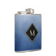 Elegant Brushed Blue With Simple Gold Monogram Hip Flask