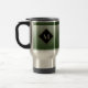 Show off your inner class with this elegant and stylish green and black monogram travel mug. This simple and sophisticated brushed gradient design with a modern diamond shaped frame with a gold border can be personalised by adding your monogrammed initial. Flat printed image, NOT metallic.
