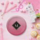 Elegant Brushed Pink With Simple Gold Monogram Paper Plate