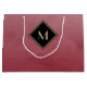 An elegant and stylish red and black monogram large size gift bag. This simple and sophisticated brushed gradient design with a modern diamond shaped frame with a gold border can be personalised by adding the monogrammed initial of the guest of honour. Flat printed image, NOT metallic.