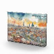 Stylish and colourful Bucharest Romania watercolor painting on a Photo Block showcasing a skyline view over the romanian capital with its landmarks and amazing architecture. Makes an amazing travel souvenir and gift idea for every tourist and visitor of Romania, Europe. Make this product your own and purchase now.