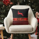 Elegant Buffalo Plaid and Red Ribbon with Reindeer Cushion
