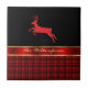 Elegant Buffalo Plaid with Reindeer and Red Ribbon Tile
