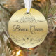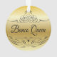 Simple styled Bunco Queen ornament with gold colour gradient background and calligraphy scroll design.