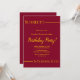 This elegant burgundy and gold birthday invitation is perfect for a modern Birthday. the simple design features elegant gold calligraphy on a burgundy background.