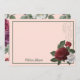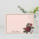 Our chic personalised stationery flat cards feature a pink and green floral front with your name or monogram in script lettering. Reverse side reveals a soft pink and burgundy rose floral background