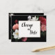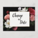 Elegant Burgundy and Pink Flowers Change the Date Postcard