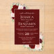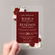 Invite your loved ones to share in your joy on your wedding day with these gorgeous acrylic invitations. The stylish boho chic floral design features your names prominently displayed in bold letters while the introduction and other notes feature fancy script calligraphy with swashes on the ends of the letters. The text is displayed on a deep marbled burgundy background, while the outside border of the invite is transparent acrylic with hand painted burgundy, red, and blush pink watercolor roses and garden greenery decorating the corners. Elegant, classy, sophisticated and beautiful, these wedding invitations are sure to leave a lasting impression.