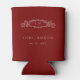Elegant Burgundy botanical crest monogram wedding Can Cooler