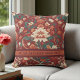 An elegant Burgundy Chinoiserie pillow featuring vintage floral motifs and nature-inspired details. This retro rustic design complements bridesmaid gifts, wedding decor, and boho home accents.