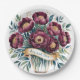 Elegant Burgundy & Emerald Peony with Gold Accent Paper Plate