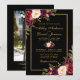Elegant Watercolor Burgundy Floral Black and Gold Wedding Invitation Card - Photo Back