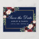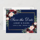 Elegant Burgundy Floral Blue Save The Date Announcement Postcard