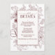 Elegant Burgundy Floral Line Art Wedding Details Enclosure Card