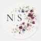 Elegant Burgundy Floral Monogram Initial Wedding Classic Round Sticker