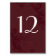 Elegant wedding reception table number card done in dark burgundy, with graphics of burgundy flourishes. Personalise the white bold text for each table at your reception. Matching wedding products available.