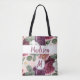 Elegant Burgundy Flowers Trendy Initial Monogram Tote Bag