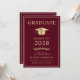 Elegant burgundy red college graduation announcement and party invitation featuring a gold graduation cap and simple modern gold typography for the graduate's name, class year, college or university, degree and major or honors. On the reverse side, add the graduation details.