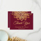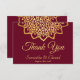 Elegant Burgundy Flat Thank You Wedding Card with an intricate faux gold Mandala flower design representing the blossoming of Purity within our Soul. The colour Burgundy increases energy in a thoughtful, dignified and controlled way. Encourages feelings of warmth and comfort. You can change the text from the Personalise Menu. Original Design by SunFreeStar