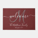 Elegant Burgundy Grey Monogram Script Name Wedding Doormat