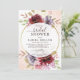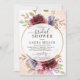Floral bridal shower invitation featuring delicate burgundy, pink, lilac roses and greenery surrounding a circular golden frame and your party details in modern font.The invitation can be easily customised for any event by adding your event details, font style, font size & colour, and wording of your choice by clicking on the 'Personalise' button.