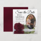 Elegant Burgundy Maroon Rose & Oval Photo Wedding Save The Date