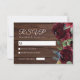 Elegant Burgundy & Marsala Flowers Wood Wedding RSVP Card