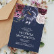 Elegant 80th birthday party invitation for women with burgundy, navy blue, and white watercolor flowers and greenery on a navy blue background. Contact me for assistance with customisation or to request matching or coordinating Zazzle products.