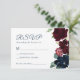 Elegant Burgundy & Navy Blue Flowers Wedding RSVP Card