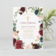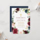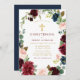 A modern faux gold cross design in the middle of a burgundy navy floral wreath. The watercolor hand painted flowers complement the navy, the perfect and unique design to celebrate the christening of a baby boy. You can personalise this template by customising its text and other details.