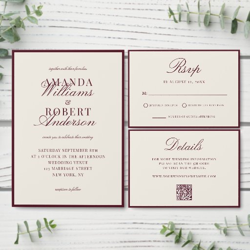 Elegant Burgundy Old Money All In One Wedding Invitation