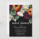 This elegant dark moody jewel tone burgundy, wine, orange, and blush floral bridal shower invitation features feature a rich set of flower graphics, including roses, ranunculus, dahlias, snapdragons, and other flowers in burgundy, orange, blush, and white on a black background, and elegant hand lettered script calligraphy. Easy to personalise with your own information, and the background colour is also customisable. These cards are perfect for the bride planning a boho wedding, garden wedding, vintage wedding, romantic wedding, floral wedding, or for any bride who loves jewel tones and flowers. Easy to personalise with your own information, and the background colour is also customisable. Design by T.K. Goforth.