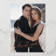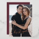 Elegant personalised photo save the date invitation with a big handwritten calligraphy font in real gold foil for the spouse's names, your image of choice and wedding date on a burgundy red background on the back of the card. All text elements and colours can be customised! Use the design tool to make the text box for your names fit. Need help customising this design? Drop me a message!