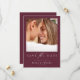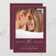 The Elegant Burgundy Photo Wedding Save The Date features a chic, minimalist design that beautifully showcases your favourite photo against a rich burgundy backdrop, paired with stylish calligraphy. Its simple yet modern aesthetic offers a touch of boho charm, and it's fully editable to match your vision—feel free to reach out if you need any assistance!