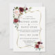 Elegant Burgundy Pink Flowers Gold Frame Wedding Invitation