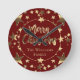 Elegant Burgundy Red Gold Stars Merry Christmas Round Clock