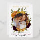 A circular photo of the couple is centred and framed by these rich-toned flowers and some wispy greenery. The text "SAVE the DATE" is prominently displayed in a gold or foil-effect font, giving it a touch of luxury. Personalise with your wedding details, and please find matching designs from my "DreamHut" store.