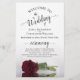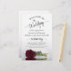 These wedding programs are elegant and tasteful, while still being budget friendly. The design features a single long-stemmed burgundy, maroon, or wine red coloured rose lying on its side, reflecting in a pool of water with waves and ripples. The typography features lacy black script calligraphy, and there is room for details on the ceremony, the bridal party, and a short thank you.