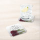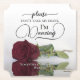 This wedding coaster is elegant, stylish, and fun! It features a photo of a single long-stemmed burgundy, maroon, or wine-red coloured rose lying on its side mirrored in a pool of water. The text reads "Please don't take my drink, I'm dancing" written in modern script lettering. There is space for the names of the couple and wedding date at the bottom. Great memento for your guests and also a practical way to let the wait staff know not to clear the drinks just yet!