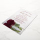 This beautiful bridal shower invitation features a gorgeous design with a single long-stemmed burgundy rose reflecting in a pool of water. The elegant script calligraphy lettering includes burgundy or maroon coloured text interspersed with real pressed foil rose gold accents. Elegant, classy, sophisticated and chic, these invitations are a wonderful way to celebrate the bride to be.